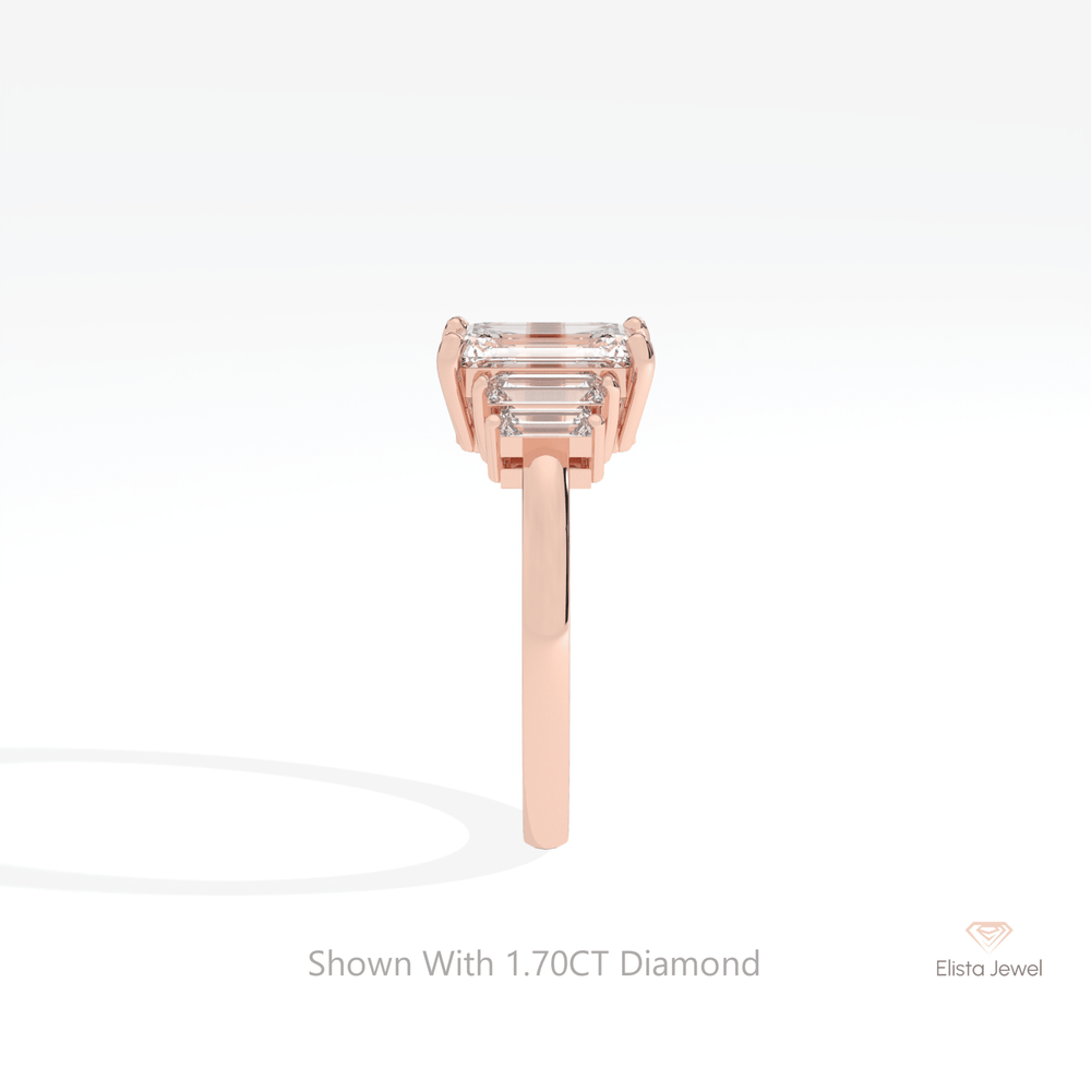Emerald Cut Five Stone Wedding Lab Grown Diamond Ring in 14K Rose Gold - Profile View