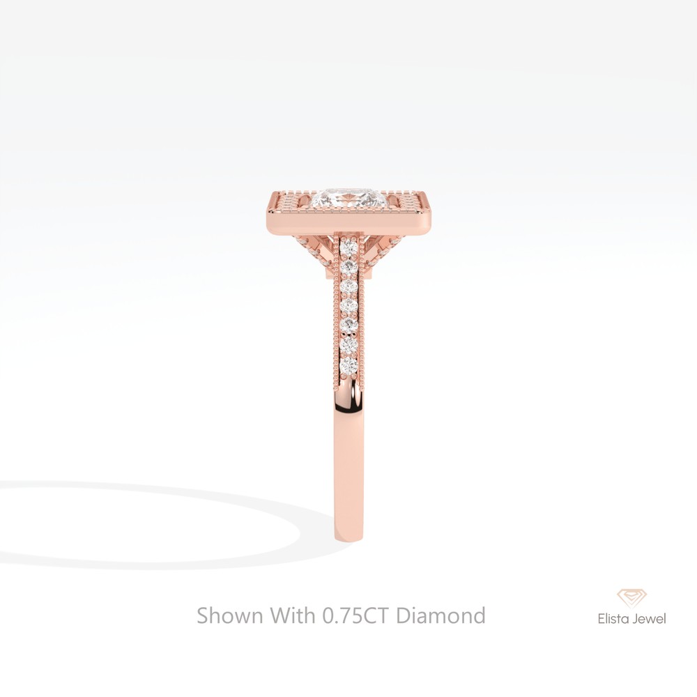 Princess Cut Halo Wedding Lab Grown Diamond Ring in 14K Rose Gold - Profile View