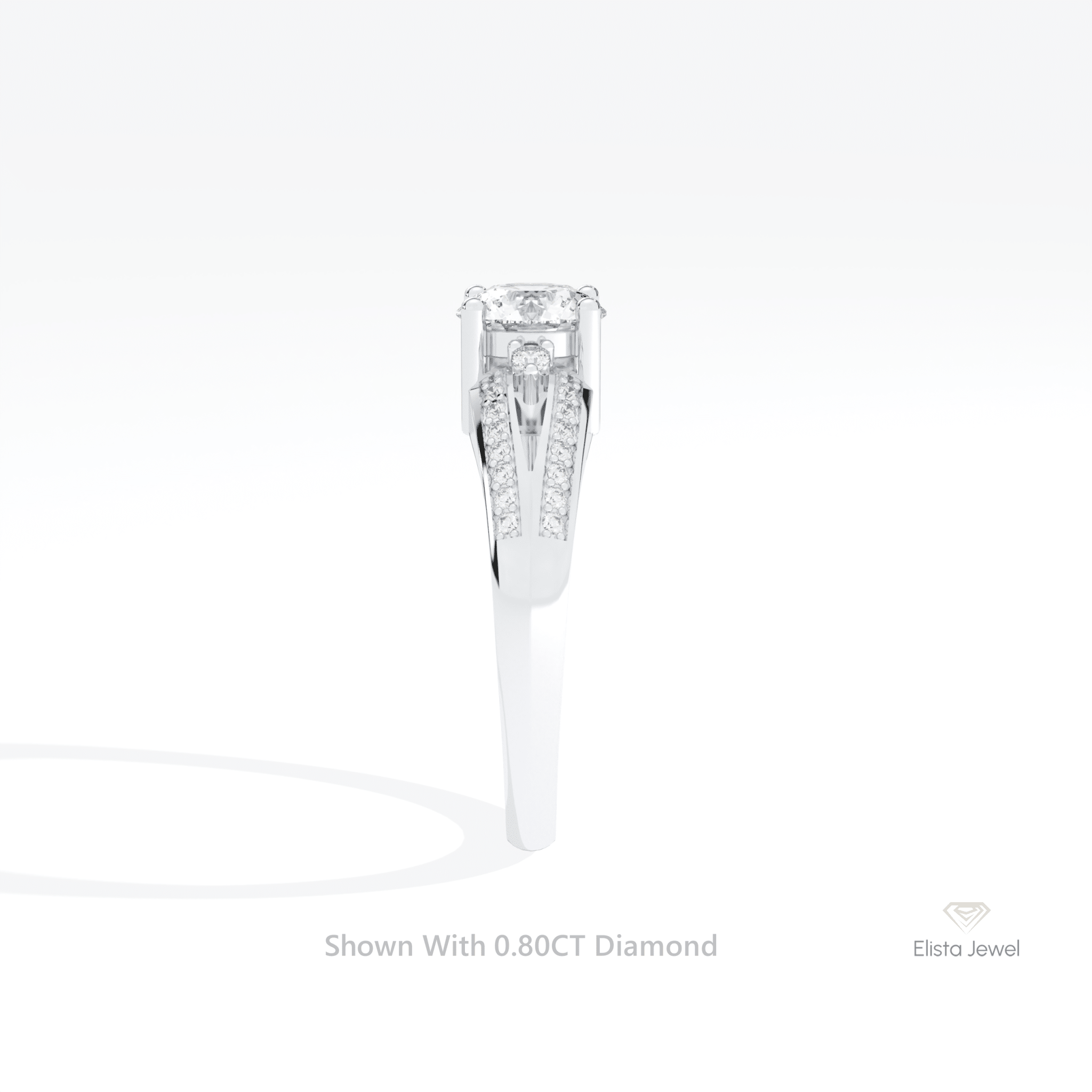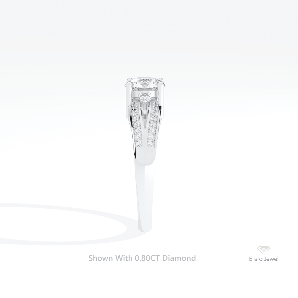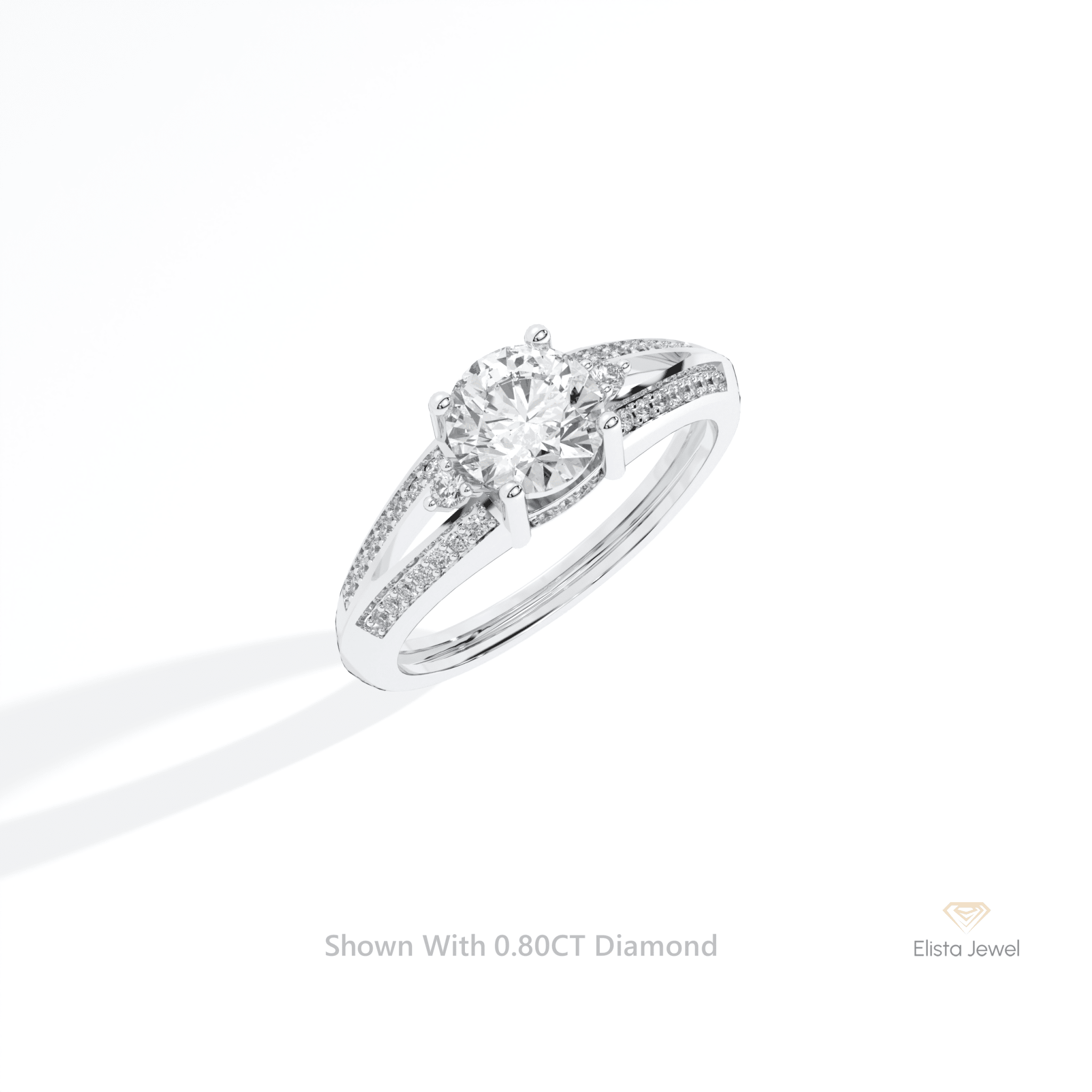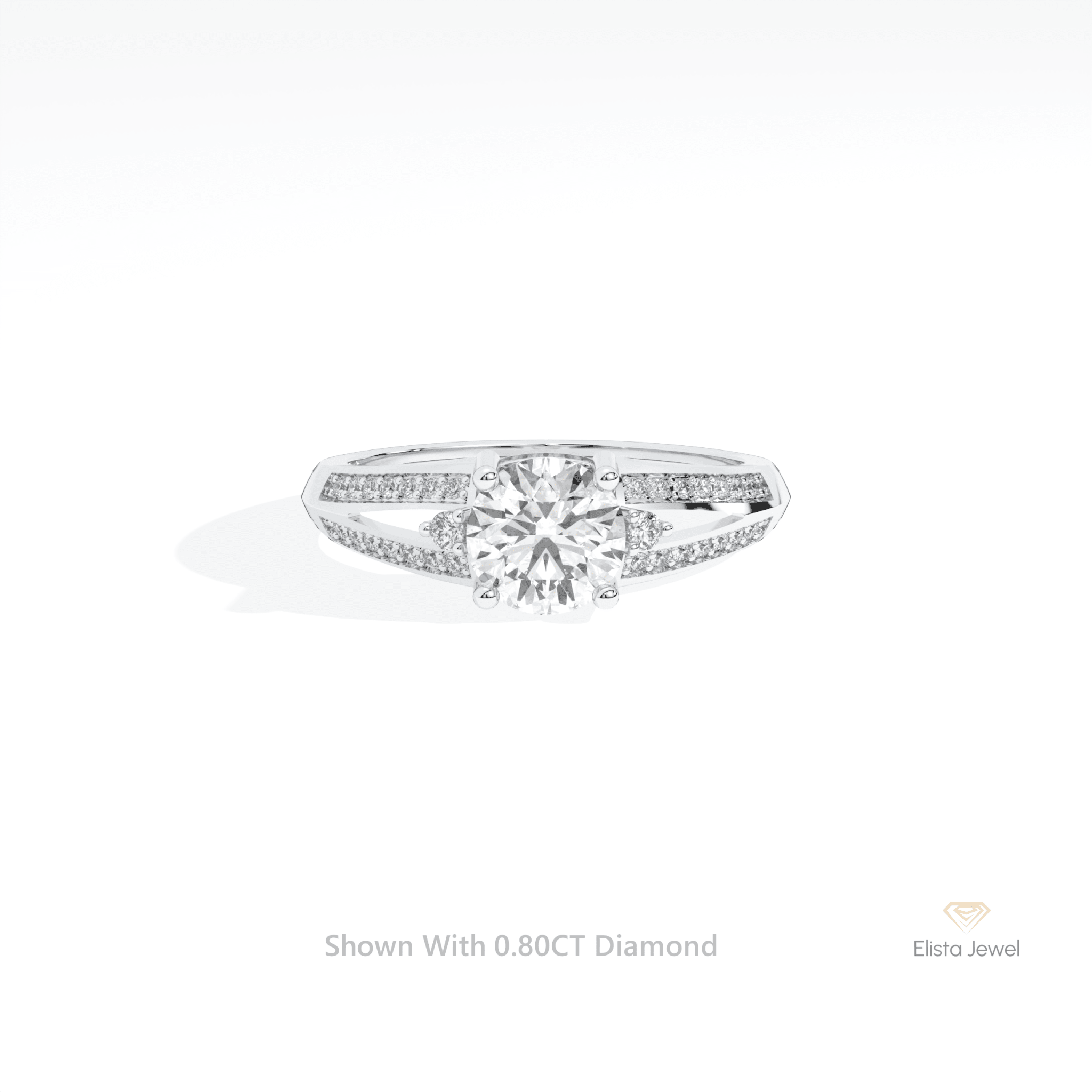 Round Cut Diamond Split Shank Engagement Ring Round Accent 10k Solid White Gold Ring – Elista Jewel