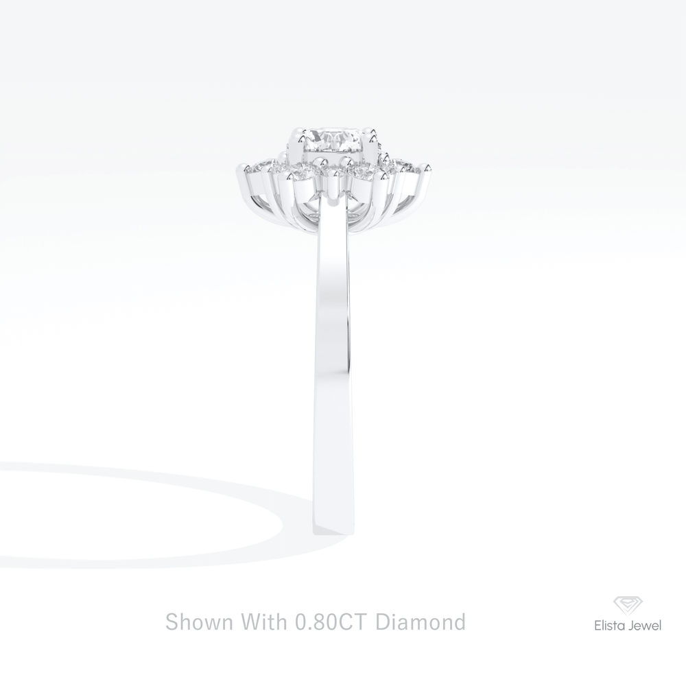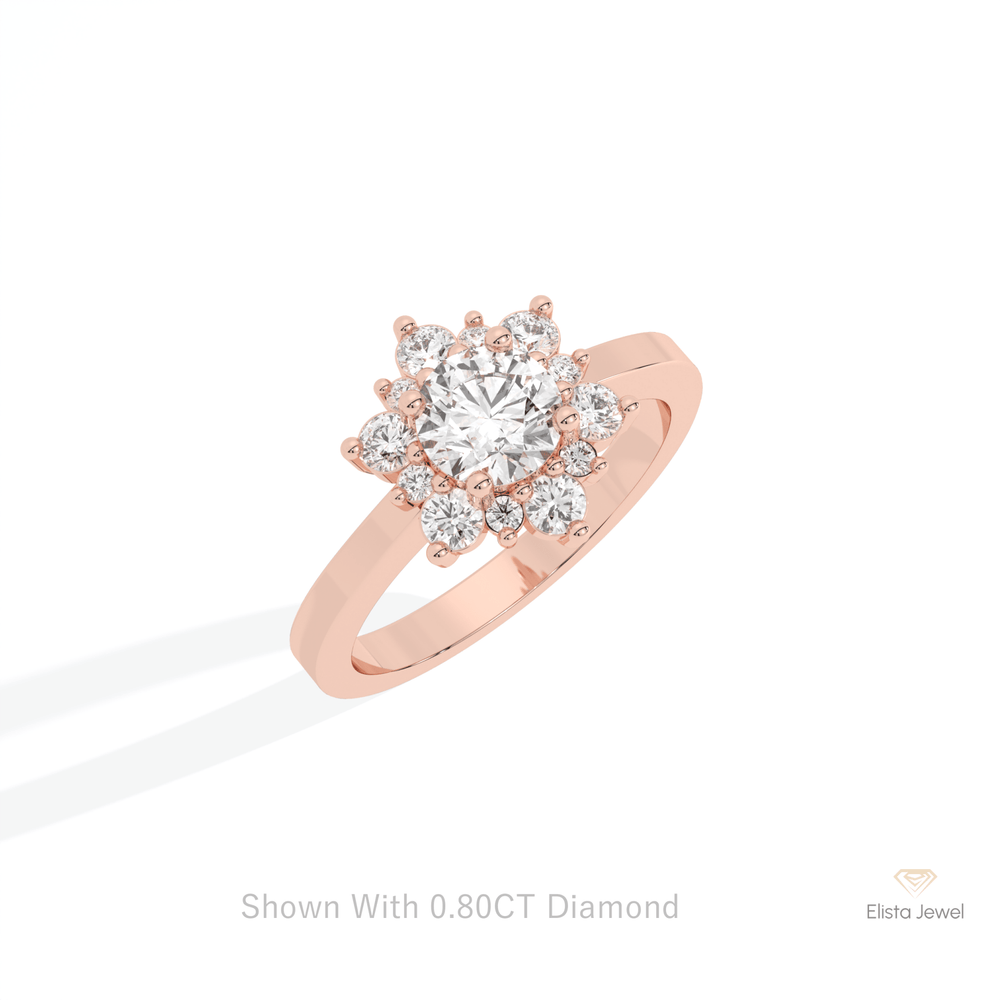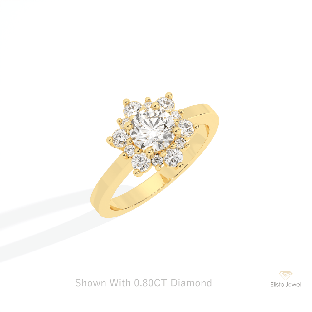 Round Cut Floral Halo Engagement Ring