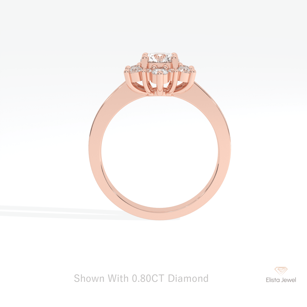 Round Cut Floral Halo Engagement Lab Grown Diamond Ring in 14K Rose Gold - Profile View