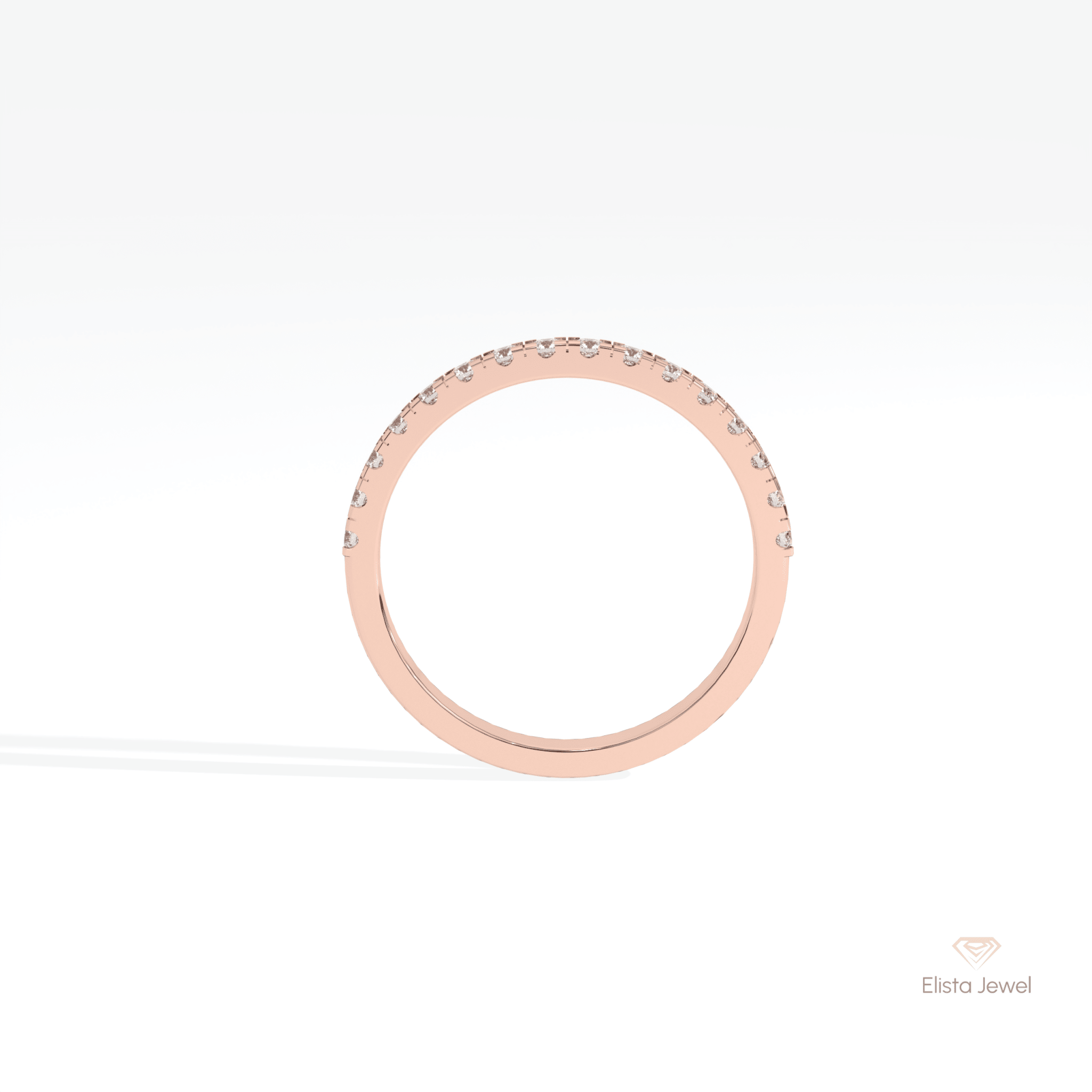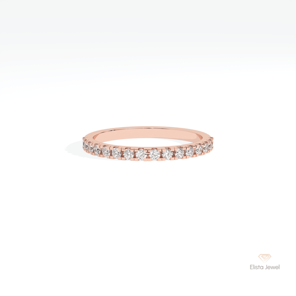 Round Cut Half Eternity Wedding Lab Grown Diamond Band in 14K Rose Gold - Profile View